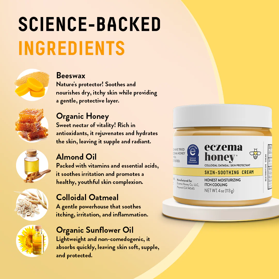 Eczema Honey Original OR Nut Free Skin Soothing Cream Try our cult favorite Skin Soothing Cream that temporarily protects and helps relieve minor skin irritation and itching due to rashes and eczema.